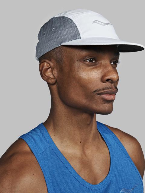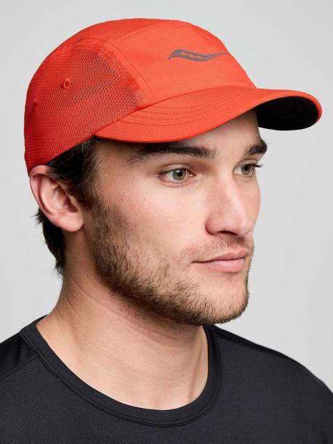 Ultra lightweight and meshy, this hat will feel like wearing nothing. FEATURES & BENEFITS - Primary material: 127 g/m2 49% Polyester / 41% Polyester (Recycled) / 10% Elastane - Polyester mesh sides for extra breathability - Clip and adjustable webbing for customizable fit - Saucony reflective logo at front of cap