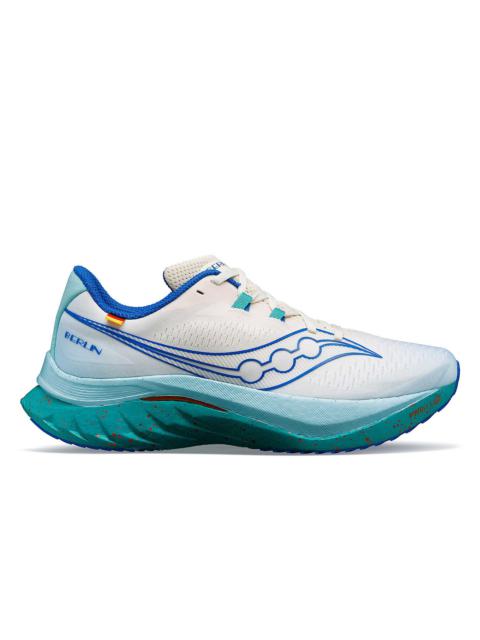 Limit 1 pair per household. Meet the Minted NY x Saucony Endorphin Speed 4, an exclusive collaboration merging Minted NY's signature style with Saucony's cutting-edge performance technology. Minted NY is an independent brand based out of NYC, owned and operated by brothers Marcus and Shawn Milione. The brand started with jewelry and now spans running supplements, athletic wear, and menswear—reflecting their unique take on running and fashion. Made for Everyday Training/ Speed Training SUPPORT: Neutral CUSHIONING: PWRRUN PB WEIGHT: Unisex: 8.2oz (233g) OFFSET: 8mm (36mm/28mm) Highlights - Top to bottom "Minted Blue" colorway - Minted NY logo on tongue, heel, and laces - Runner Artwork on back heel - Smooth SPEEDROLL technology for effortless speed, smooth turnover and propulsive forward motion - PWRRUN PB foam is a true unicorn, offering the best combination of cushioning and energy return of any foam on the market - Engineered winged nylon plate provides reinforcement while maintaining flexibility