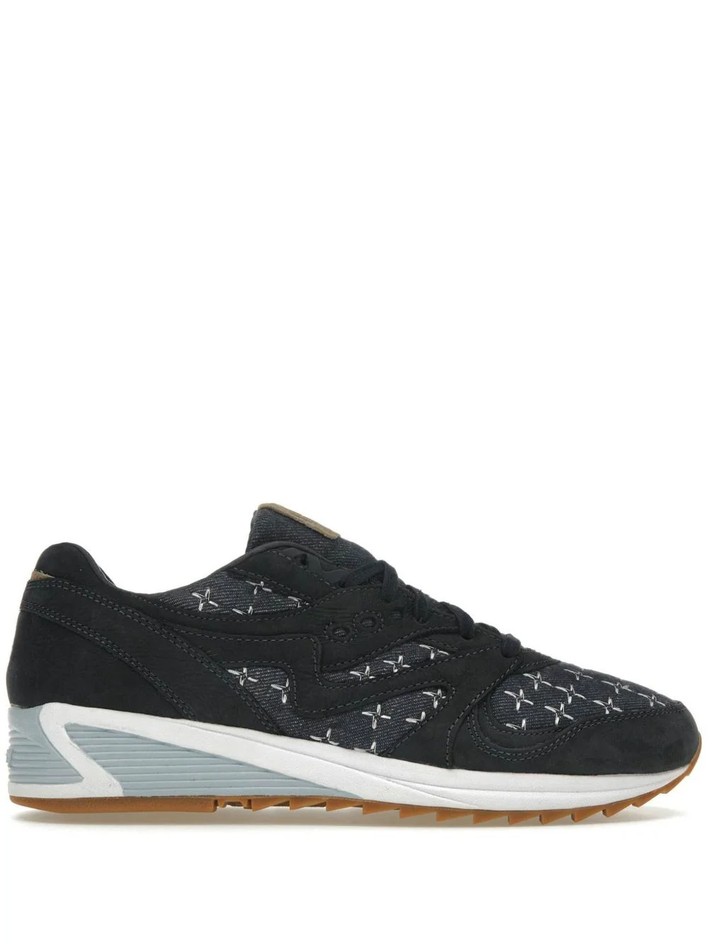 x Up There Grid 8000 Sashiko sneakers Highlights - Navy blue - Panelled design - Suede upper - Ridged rubber sole - Tonal stitching - Padded collar - Lace-up fastening - Round toe Imported Composition Sole: Rubber 100% Outer: Fabric 100%, Suede 100%