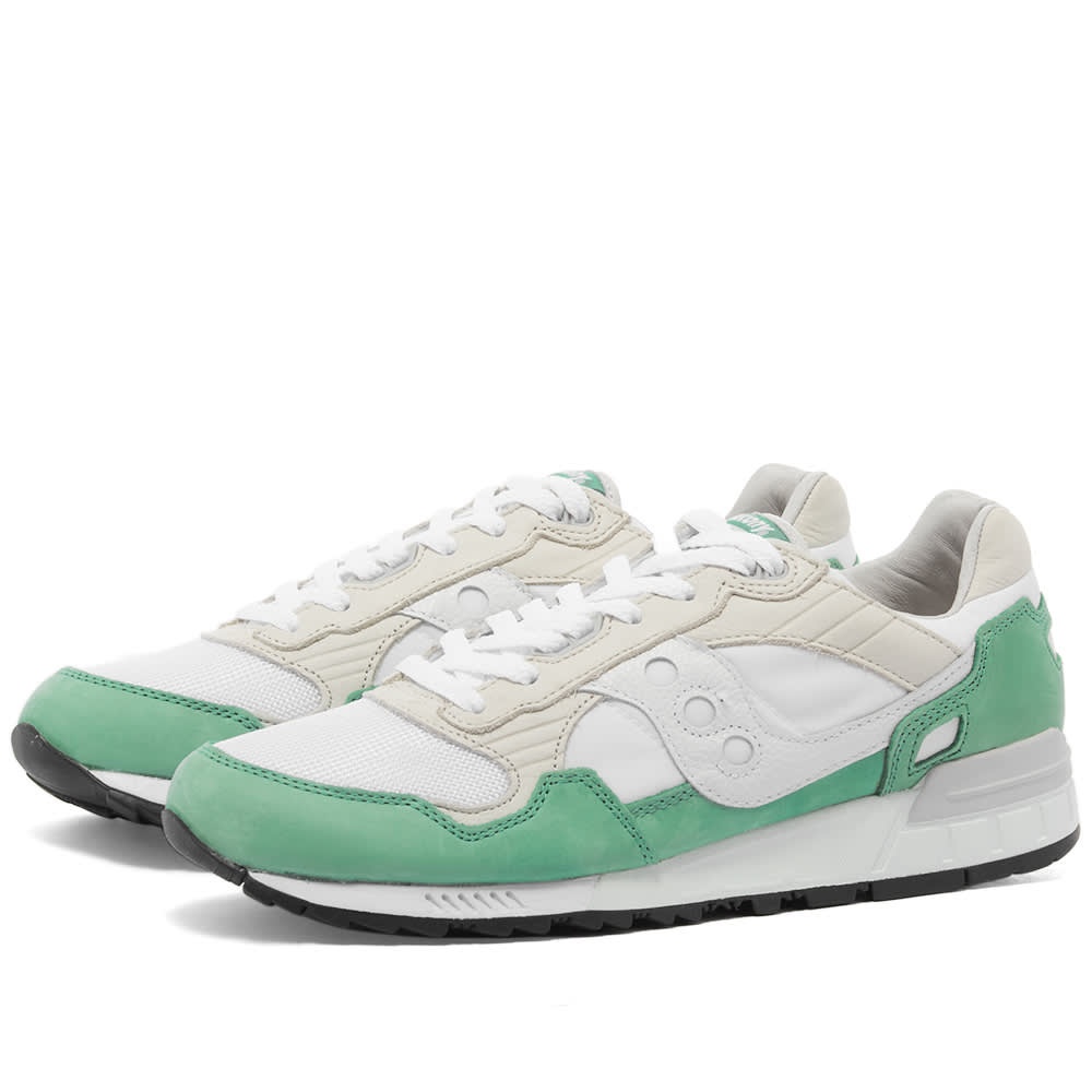 A fresh take on a vintage style - the Saucony Shadow 5000 is the perfect silhouette for everyday wear. This pair are crafted with white mesh uppers, green suede overlays and a chunky rubber outsole for optimum comfort. - Mesh Uppers - Pigskin Suede Overlays - Rubber Outsole