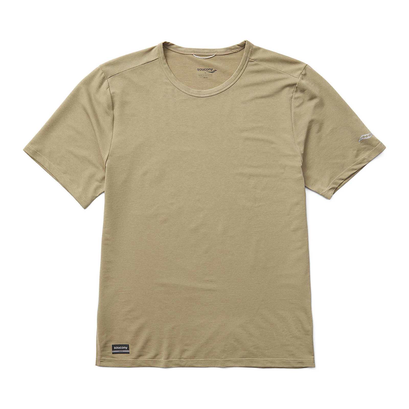 Redesigned for incredible breathability and optimal stretch. FEATURES & BENEFITS - Dialed in fit and function - Best-in-class sweat-wicking - Now with superior 4-way stretch material - Flat lock seams - Made of 92% Recycled Polyester - Best for: Daily runs or workouts - Active fit - Primary material: 140 g/m2 92% Polyester (Recycled) / 8% Elastane - Shaped hem is ideal for layering whether tucked or untucked - Small internal locker loop for hanging to dry - Reflective logos and Saucony patch logo - Model is wearing a size medium