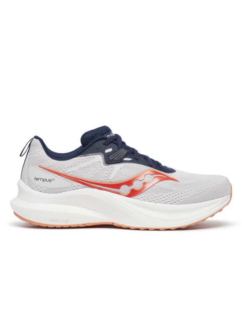 Tempus 2 is our premium lightweight, support style featuring innovative foams. Designed with an exclusive support system, premium foam and a lightweight, go-fast geometry, the Tempus 2 is the perfect blend of cushion and stability for effortless runs, particularly at a faster pace. FEATURES & BENEFITS - Improved engineered mesh for a secure midfoot fit - Combines the superfoam efficiency you crave with an adaptive guidance system you need - Energy efficient PWRRUN PB is our superfoam cushioning that provides the greatest level of energy return - PWRRUN supportive frame guides your foot forward, smoothly. The assymetrical design provides medial support - even at high speeds - Best For: Speed Run/Daily Run/Workout - Heel-to-toe Offset: 8mm (33mm heel/ 25mm forefoot) - Weight: 9.4oz (269g) - Sustainability: This style is vegan and contains recycled materials