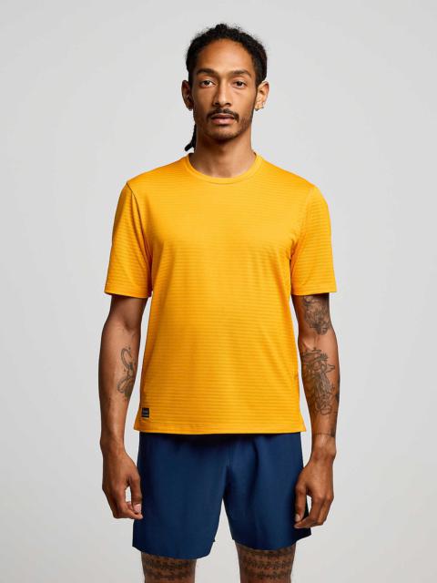 Luxurious comfort that stretches the meaning of active wear. FEATURES & BENEFITS - Fabric fluidly flows with you - drirelease® E.C.O dries you up 4x faster than cotton - Buttery-soft hand feel - Responsibly made - Luxurious stretch knit - 30+ UPF rating - Best for: Active, all-day - Active fit - Primary material: 185g/m2 82% Polyester (Recycled)/ 11% Lyocell / 7% Elastane - Reflective logo and Saucony logo patch - Model is wearing a size medium
