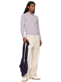 Cotton twill tote in purple and navy. · Stripes throughout · Fixed crossbody strap · Patch compartment at face · Open throat · Unlined · H10" x W17" x D7.5" Supplier color: Arcade 100% cotton. Made in United States 252490M170003