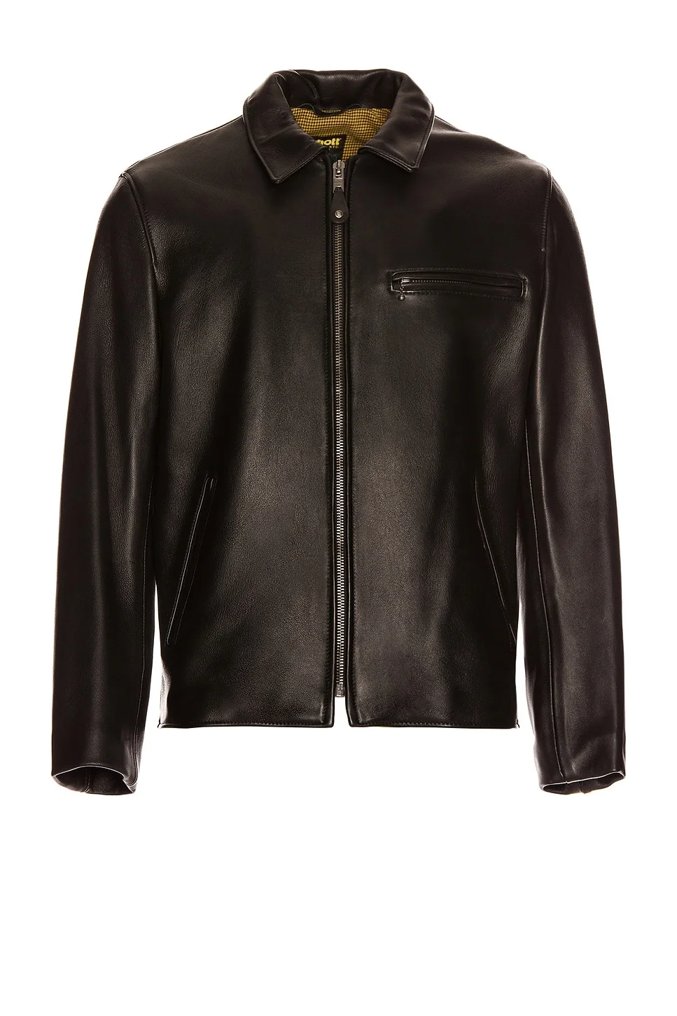 - Self: 100% lamb skin leather Body Lining: 100% cotton Sleeve Lining: 100% poly - Made in USA - Professional leather cleaning only - Zip front closure with pull tab - Chest zip pocket - Side welt pockets - Interior welt pocket - Bi-swing back - Revolve Style No. SCHF-MO22 - Manufacturer Style No. 246