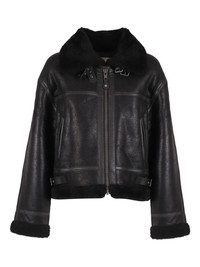 fur-collar leather jacket Highlights - Black - Fur trim - Zip fastening - Buckle detail - Panelled design - Long sleeves Imported Composition Calf Leather 100% Washing instructions Read Manufacturer Guidelines
