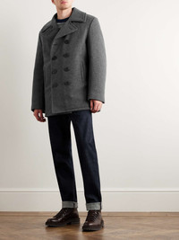 Inspired by traditional Naval uniforms, Schott's peacoat is crafted from a 32 oz. Melton wool-blend, lined with quilted nylon and detailed with both exterior handwarmer pockets and an inside chest pair. The double-breasted button fastenings are etched with an anchor motif, adding to its charm. Size & Fit - Model wears a size larger to achieve a looser fit - Designed for a boxy fit - Weighted, non-stretchy fabric - Model is shown wearing a L - Model measures: chest 38"/ 96cm, height 6'2"/ 188cm Details & Care - Grey Melton wool-blend - Double-breasted button fastenings - 80% wool, 20% nylon; padding: 100% polyester; lining: 100% nylon - Dry clean