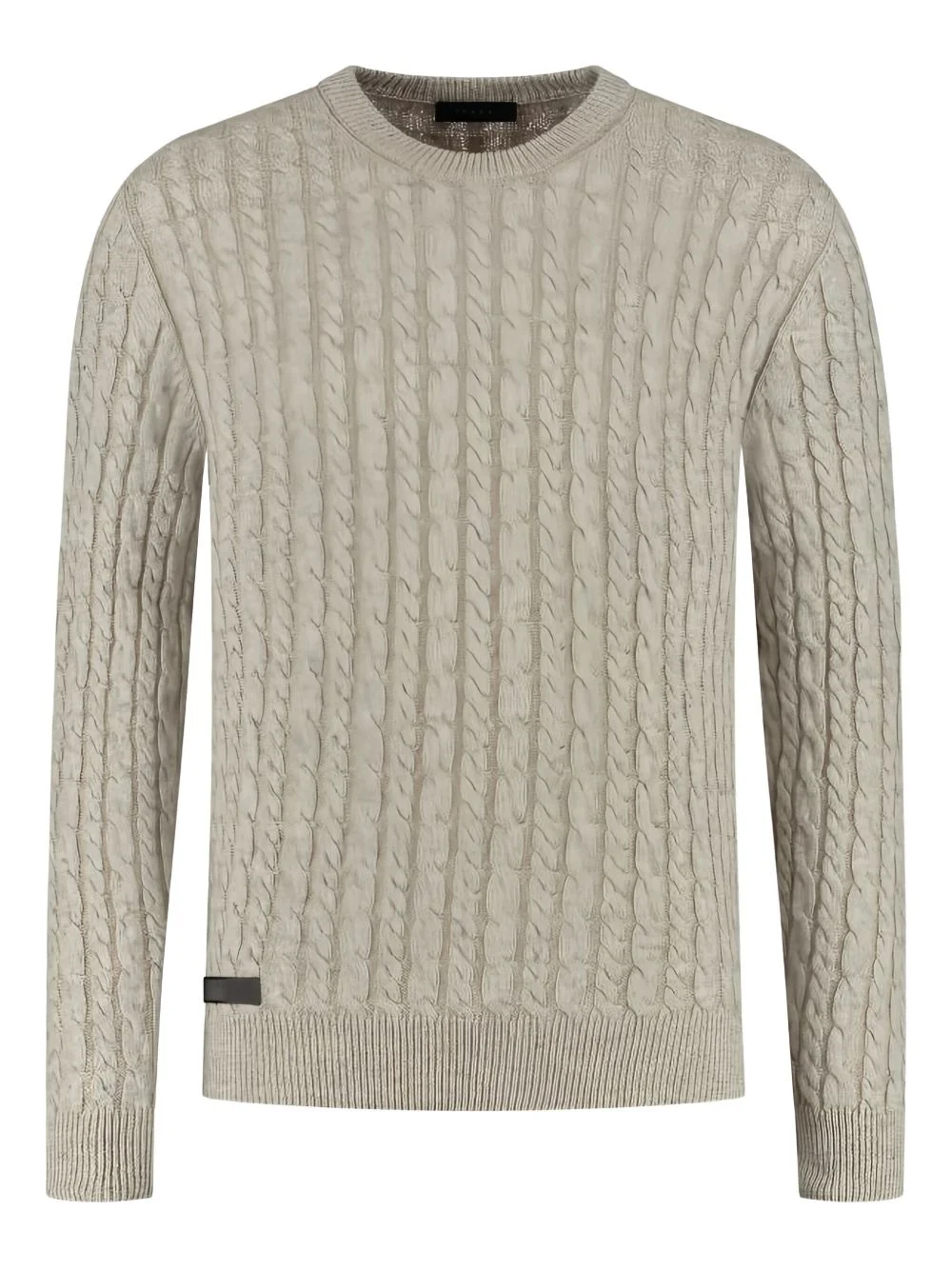 cable-knit sweater Highlights - Beige - Applique logo - Crew neck - Long sleeves - Ribbed trim Made in Italy Composition Linen/Flax 52%, Cashmere 48% Washing instructions Read Manufacturer Guidelines