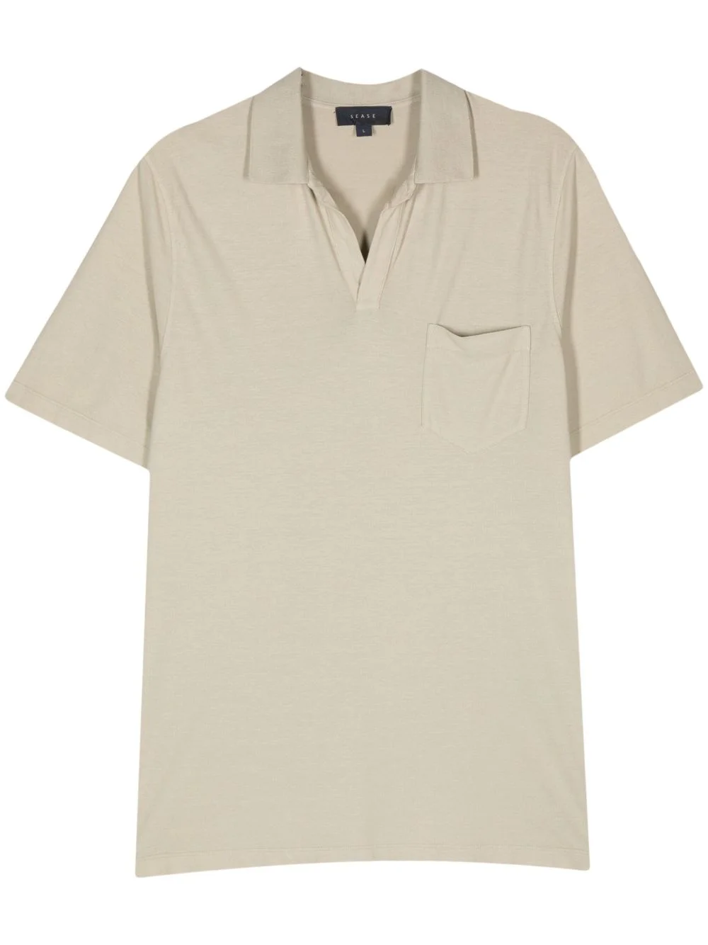 cotton polo shirt Highlights - Beige - Cotton - Lightweight jersey - Polo collar - Split neck - Short sleeves - Chest patch pocket - Short side slits - Straight hem - Straight hem Made in Italy Composition Cotton 100% Washing instructions Machine Wash