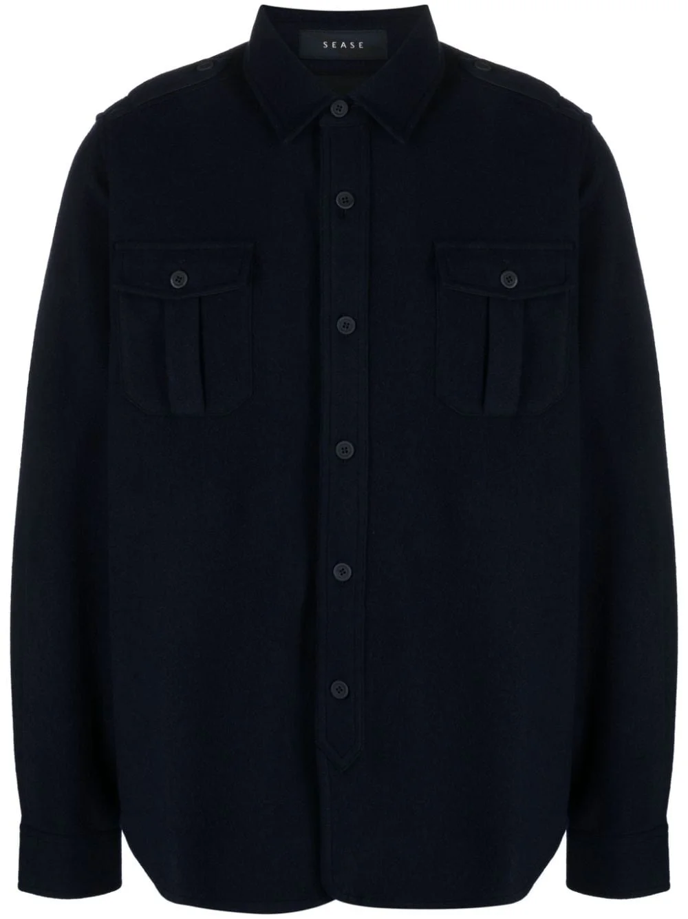 virgin wool-blend shirt jacket Highlights - Midnight blue - Virgin wool blend - Classic collar - Front button fastening - Long sleeves - Buttoned cuffs - Two button-fastening chest pockets - Curved hem Made in Italy Composition Recycled Polyester 100%, Virgin Wool 88%, Spandex/Elastane 12% SIZE & FIT Model measurements Height 6 ft 2 in(1.87 m) Bust/Chest 36.41 in(92.5 cm) Hips 35.43 in(90 cm) Waist 29.52 in(75 cm) FittingInformation Designed for a regular fit, allowing for a comfortably loose fit throughout the body Made from a midweight non-stretch fabric, this piece offers minimal elasticity when worn This piece fits true to size – take your usual size Washing instructions Dry Clean Only