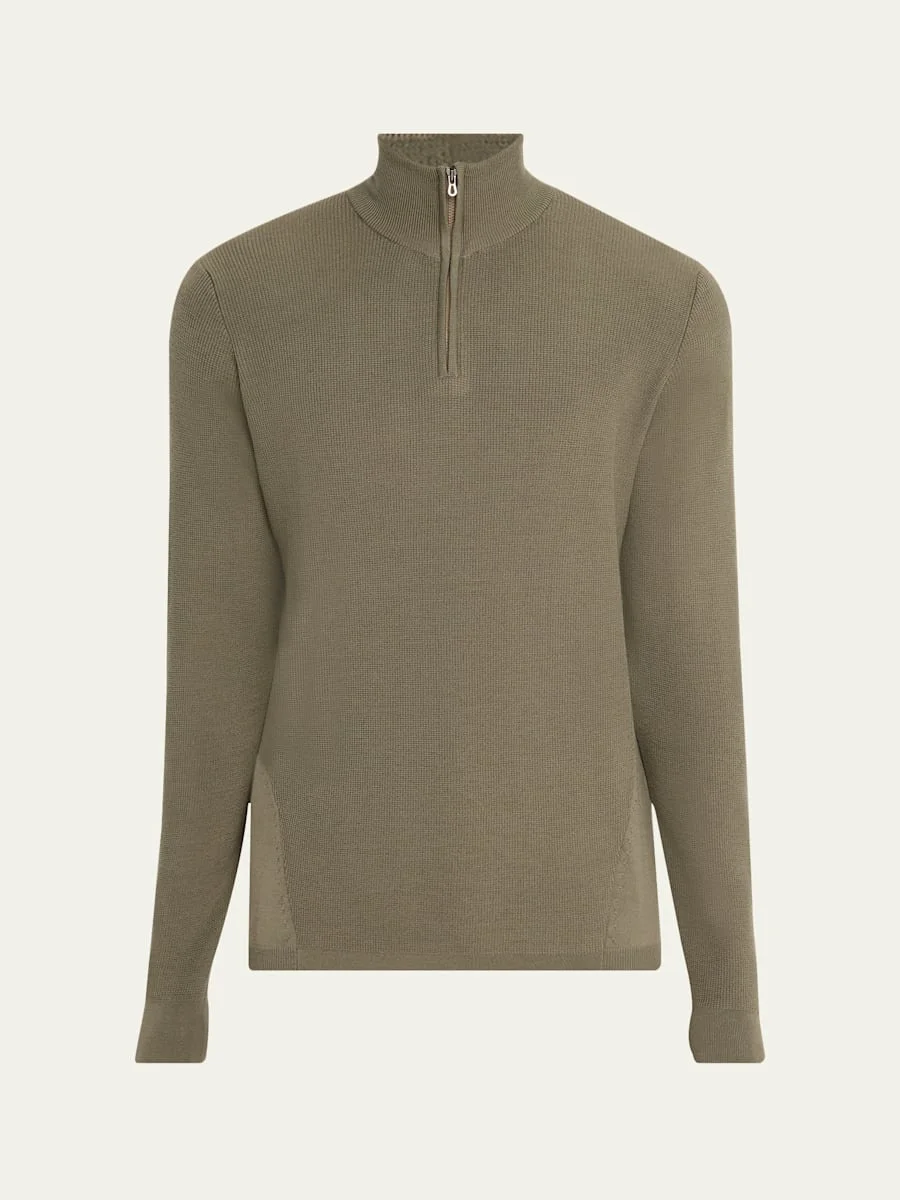 This waffleknit Sease pullover is crafted in extrafine virgin wool yarn, featuring a finely knit back for subtle luxurious contrast Stand collar Halfzip front Long sleeves Regular fit Pullover style Virgin wool Made in Italy
