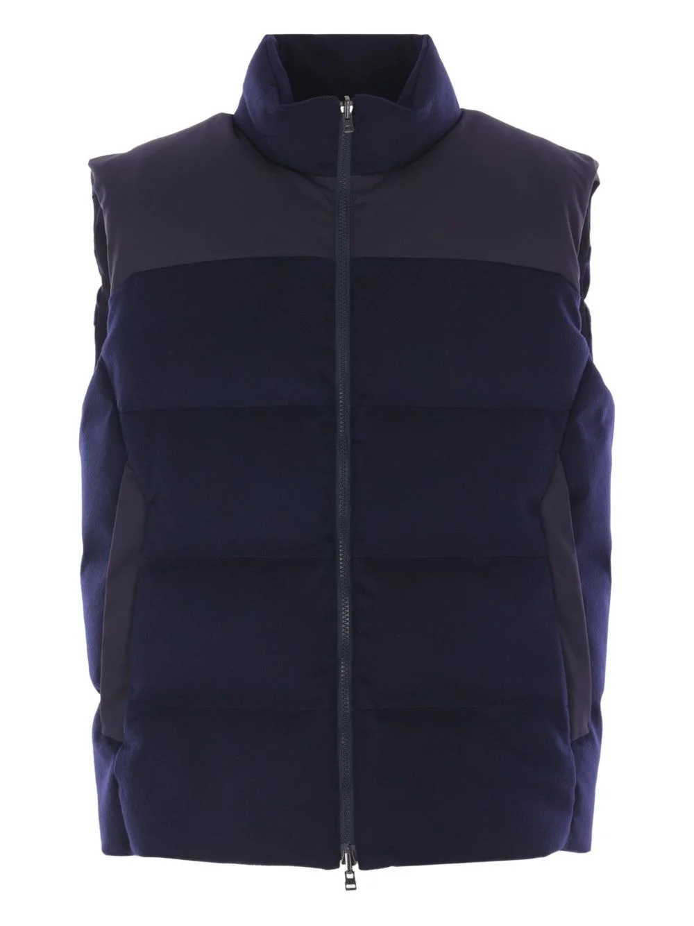 padded zip gilet Highlights - Blue - Padded design - Zip fastening - High neck - Sleeveless - Panelled design Made in Italy Composition Outer: Cashmere 100%, Polyester 100% Lining: Polyester 100%, Recycled Down 80%, Recycled Feather 1% Washing instructions Read Manufacturer Guidelines