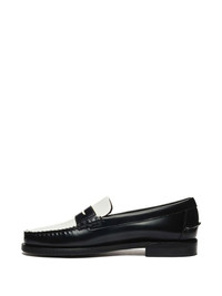 two-tone leather loafers Highlights - Black and white - Leather upper - Penny strap - Slip-on style Imported Composition Leather 80%, Rubber 20% Outer: Leather 100% Lining: Fabric 100%