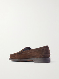 Sebago was founded in New England, the home of Ivy League style. A tribute to its heritage, these 'Classic Dan' penny loafers are hand-sewn from supple suede and have perforated liners for breathability. The heels are cut with a classic 'gentleman's notch' to prevent your trousers from snagging while you walk. Size & Fit Fits true to size, please refer to Sebago size guide below: - UK 6 = US 6.5/ EU 39.5 - UK 6.5 = US 7/ EU 40 - UK 7 = US 7.5/ EU 41 - UK 7.5 = US 8/ EU 41.5 - UK 8 = US 8.5/ EU 42 - UK 8.5 = US 9/ EU 43 - UK 9 = US 9.5/ EU 43.5 - UK 9.5 = US 10/ EU 44 - UK 10 = US 10.5/ EU 44.5 - UK 10.5 = US 11/ EU 45 - UK 11 = US 11.5/ EU 46 - UK 11.5 = US 12/ EU 46.5 - UK 12 = US 12.5/ EU 47 - UK 12.5 = US 13/ EU 48 - UK 13 = US 14/ EU 49 - UK 14 = US 15/ EU 50 Details & Care - Dark-brown suede (Cow)