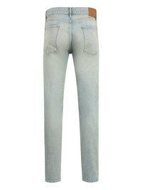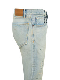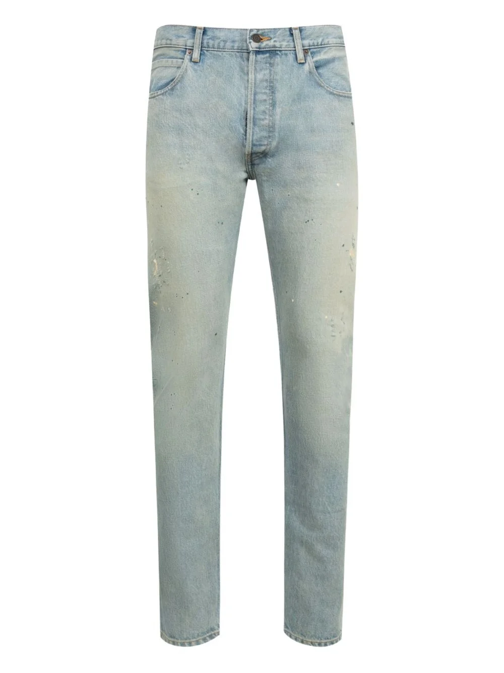 distressed jeans Highlights - Light blue - Paint splatters - Distressed effect - Five pockets - Button fly - Leather patch Imported Composition Cotton 100% Washing instructions Read Manufacturer Guidelines