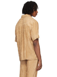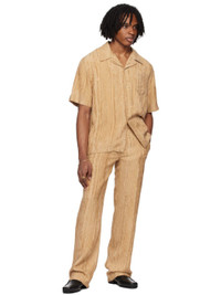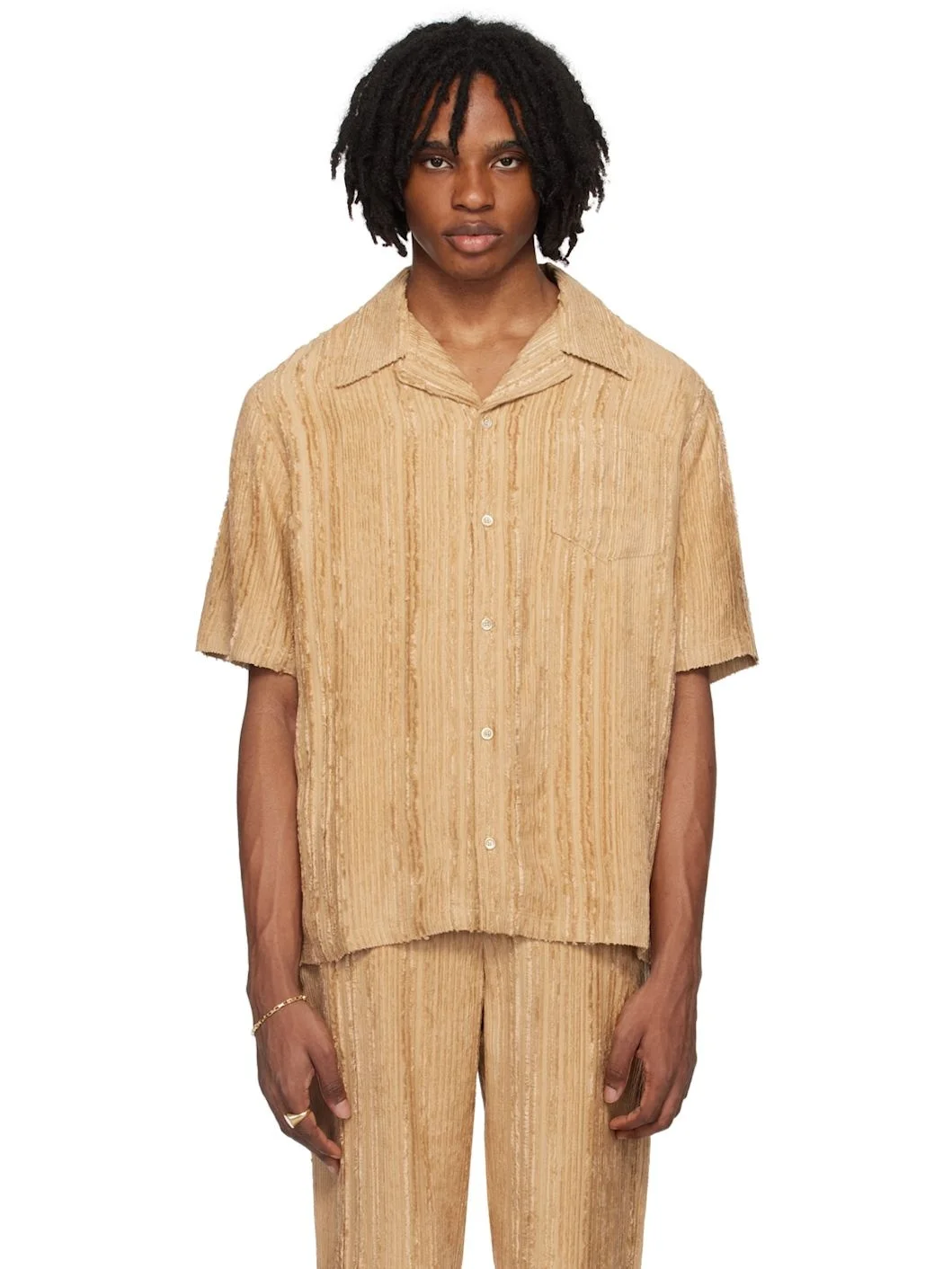 Viscose twill shirt. Fil coupe stripes throughout. · Open spread collar · Button closure · Patch pocket · Box pleat at back yoke · Mother-of-pearl hardware Supplier color: Fluid beige stripe 100% viscose. Made in Latvia 242491M192005