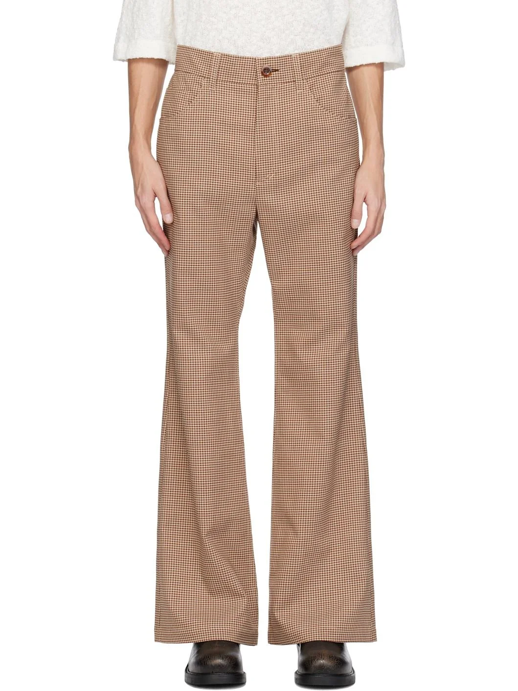 Flared straight-leg polyester- and wool-blend canvas trousers. Jacquard check pattern throughout. · Belt loops · Five-pocket styling · Zip-fly · Horn hardware Supplier color: Senior check Body: 55% polyester, 45% wool. Lining: 55% polyester, 45% viscose. Made in Latvia 251491M191000