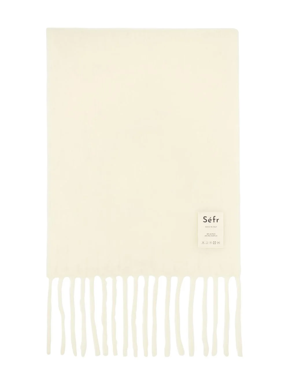 big fringed scarf Highlights - White - Fringed trim - Rectangular shape Imported Composition Fabric 100% Washing instructions Read Manufacturer Guidelines