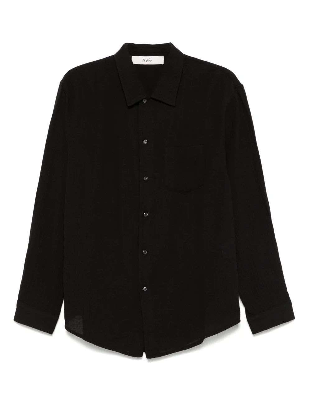 Leo shirt Highlights - Black - Front button fastening - Buttoned cuffs - Chest patch pocket - Box-pleat detail Imported Composition Cotton 100% SIZE & FIT Model measurements Height 6 ft 2 in(1.87 m) Bust/Chest 37 in(94 cm) Hips 33.85 in(86 cm) Waist 27.95 in(71 cm) Measurement CHEST 39.37 in(100 cm) SLEEVE LENGTH 32.67 in(83 cm) LENGTH 29.13 in(74 cm) Shoulder Width 17.32 in(44 cm) FittingInformation Designed for a regular fit, allowing for a comfortably loose fit throughout the body Made from a lightweight non-stretch fabric