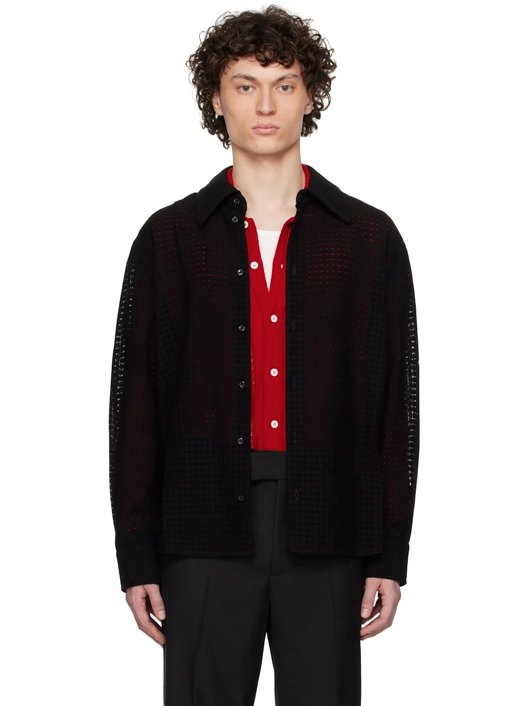 Open basketweave-knit cotton shirt. · Spread collar · Button closure · Shirttail hem · Adjustable buttoned barrel cuffs · Mother-of-pearl hardware Supplier color: Basket sable 100% cotton. Made in Latvia 251491M192004