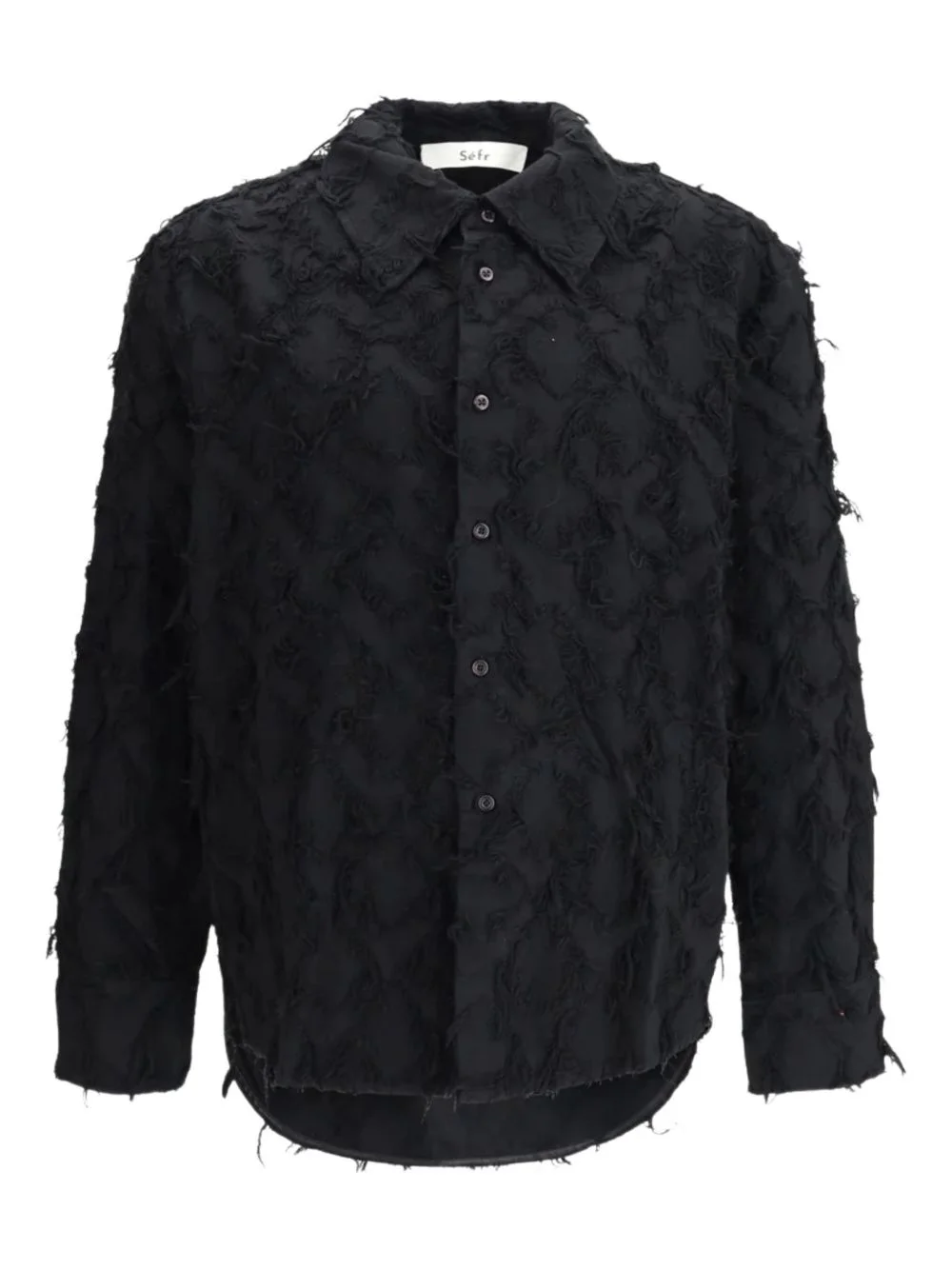 fringed twill long-sleeve shirt Highlights - Black - Fringed detail - Button fastening - Long sleeves - Buttoned cuffs - Curved hem Made in Italy Composition Cotton 100% Washing instructions Read Manufacturer Guidelines