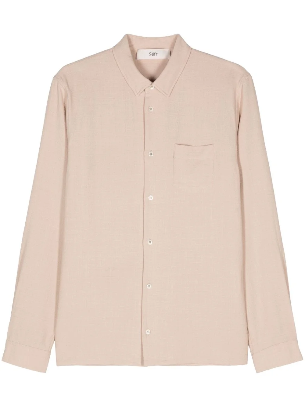 Hampus crepe shirt Highlights - Ecru - Virgin wool blend - Crepe texture - Classic collar - Chest patch pocket - Long sleeves - Buttoned cuffs - Straight hem - Front button fastening Imported Composition Viscose 60%, Virgin Wool 40% Washing instructions Dry Clean Only