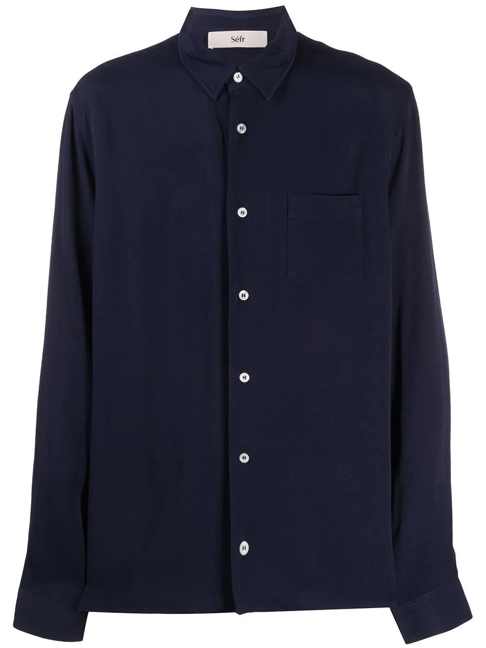 Hampus shirt Navy Hampus shirt from Sefr featuring a pointed collar, a front button fastening, a patch pocket at the chest, long sleeves, button cuffs, a straight hem and a loose style. Imported Composition Rayon 60%, Viscose 40% SIZE & FIT Model measurements Height 6 ft 2 in(1.89 m) Bust/Chest 37.79 in(96 cm) Hips 37 in(94 cm) Waist 29.92 in(76 cm) FittingInformation This piece fits true to size. We recommend you get your regular size Cut for a loose fit Made with a lightweight fabric Washing instructions Dry Clean Only