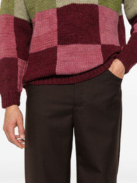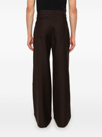 Jiro trousers Highlights - Brown - Textured finish - Front button and zip fastening - Belt loops - Classic five pockets - Straight leg Imported Composition Outer: Polyester 55%, Wool 45% Lining: Polyester 55%, Viscose 45% SIZE & FIT Model measurements Height 6 ft 2 in(1.87 m) Bust/Chest 37.79 in(96 cm) Hips 37.79 in(96 cm) Waist 30.31 in(77 cm) Measurement FRONT RISE 11.41 in(29 cm) INSIDE LEG 32.67 in(83 cm) Hem Width 22.83 in(58 cm) WAIST 31.49 in(80 cm) FittingInformation Designed with a wide leg, offering a loose and roomy fit Made from a midweight non-stretch fabric