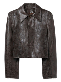 Keane faux-leather jacket Highlights - Dark brown - Textured finish - Pointed collar - Front button fastening - Long sleeves - Straight hem Imported Composition Lining: Viscose 100% Outer: Polyester 100% Washing instructions Dry Clean Only