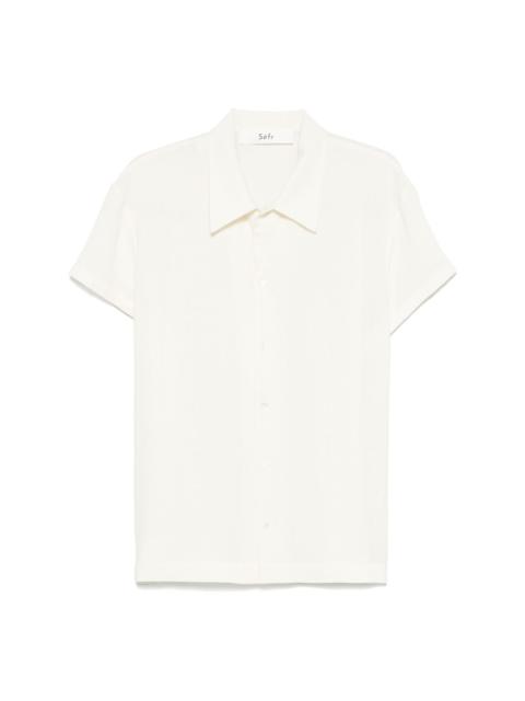 Mael shirt Highlights - Black - Front button fastening - Camp collar - Short sleeves - Straight hem Imported Composition Viscose 60%, Virgin Wool 40% SIZE & FIT Model measurements Height 6 ft 2 in(1.87 m) Bust/Chest 37 in(94 cm) Hips 33.85 in(86 cm) Waist 27.95 in(71 cm) FittingInformation Designed for a regular fit, allowing for a comfortably loose fit throughout the body Made from a midweight non-stretch fabric
