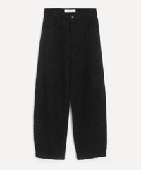 DETAILS Boucle trousers Regular fit Regular waist Barrel-leg Button fastening, zip fly Belt loops Side pockets Rear patch pockets Branded jacron patch on the back waistband SIZE & FIT Model is 188cm/6'2"; Chest: 91cm; Waist: 79cm and wears a size M COMPOSITION & CARE 68% Cotton; 32% Polyamide Dry clean