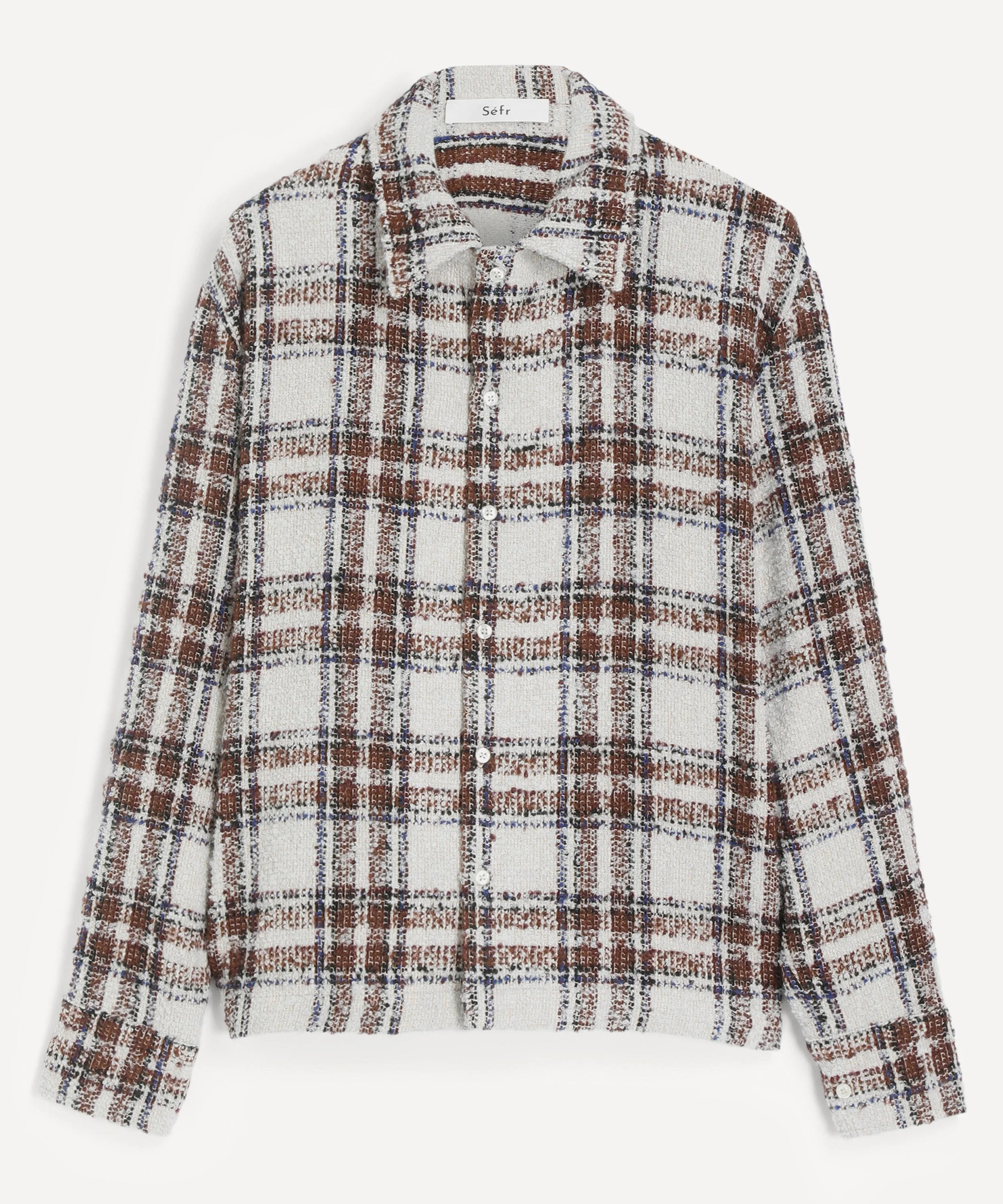 DETAILS Boucle check shirt Relaxed fit Spread collar Button fastening Barrel cuffs Straight hem SIZE & FIT Model is 188cm/6'2"; Chest: 91cm; Waist: 79cm and wears a size M COMPOSITION & CARE 60% Acrylic; 26% Virgin wool; 14% Polyamide Dry clean