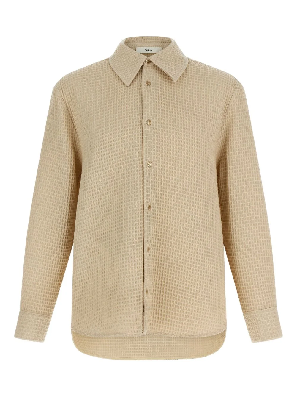 waffle-knitted buttoned shirt Highlights - Beige - Waffle knit - Pointed collar - Button closure - Long cuffed sleeves Imported Composition Cotton 100% Washing instructions Read Manufacturer Guidelines