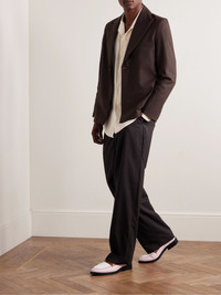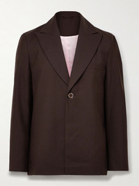 Sefr co-founders Per Fredrikson and Sinan Abi pay no mind to current trends, instead following a collective intuition on what feels right in the moment. This 'Seydou' blazer is tailored from twill blended with plenty of wool and has padded shoulders for structure. It's fully lined in satin, allowing you to layer with ease. Size & Fit - Fits true to size. Take your normal size - Designed for a relaxed fit - Mid-weight, non-stretchy fabric - Model is shown wearing a M - Model measures: chest 38"/ 96cm, height 6'2"/ 188cm Details & Care - Chocolate twill - Peak lapels, split cuffs, chest welt pocket, internal buttoned slip pocket, fully lined - One button fastening - 55% polyester, 45% wool; lining: 100% viscose - Dry clean