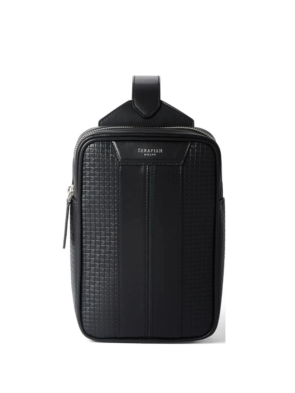 logo-detail messenger bag Highlights - Black - Calf leather - Textured finish - Zip fastening - Adjustable strap Made In Italy Composition Outer: Calf Leather 100%, Canvas 100%