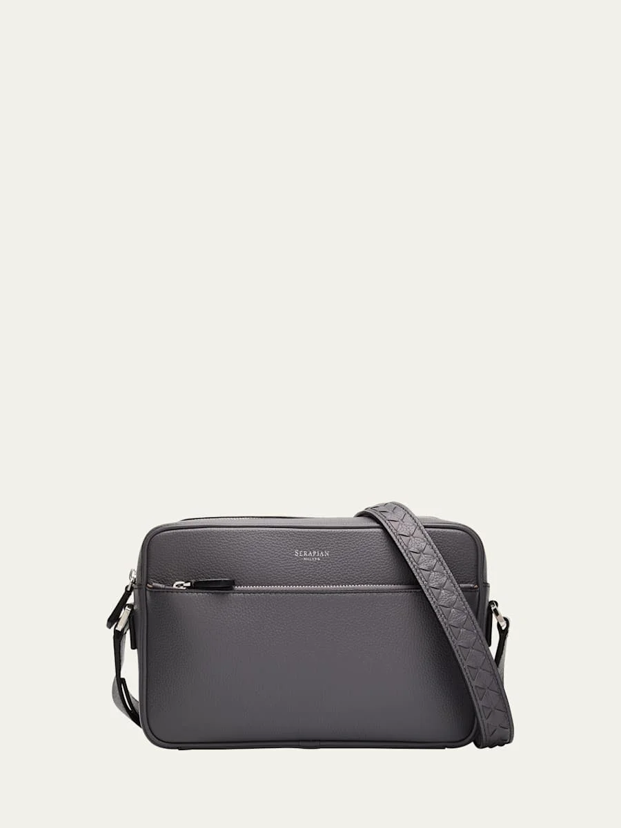 Serapian East/West bag in Italian tumbled Cachemire calfskin leather showcasing Mosaico craftsmanship on the strap Zip closure Adjustable leather shoulder strap Exterior, one front zip pocket Interior, single compartment, one flat pocket Sueded microfiber lining Palladium finish hardware Approx. 6.7"H x 9.8"W x 2.8"D Leather method dry cleaning Made in Italy Online Inquiries: BGS21_NDMNF| Store Inquiries: #5049603