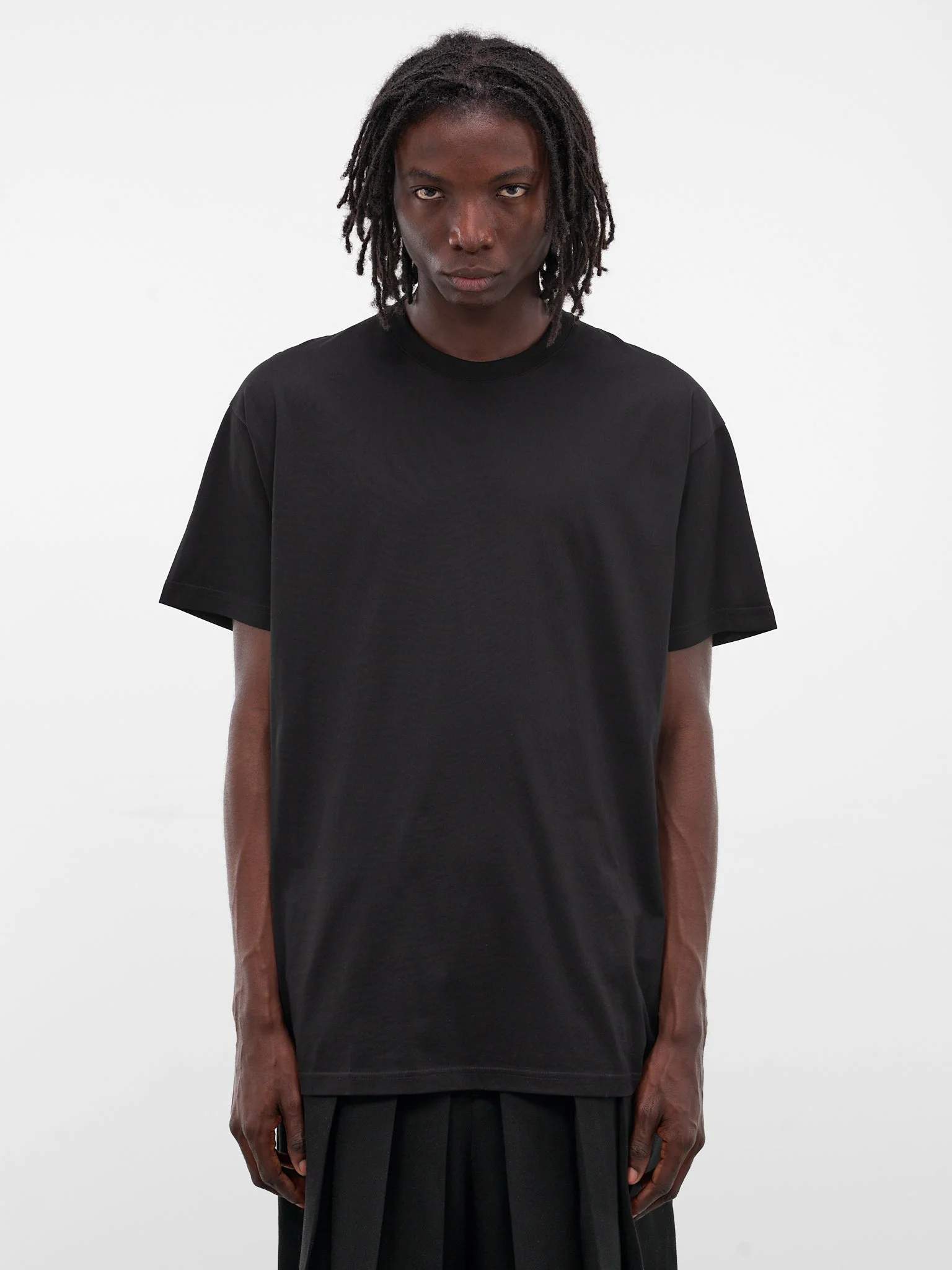 Featuring: • Relaxed fit • Ribbed crewneck • Short sleeves • Made in Portugal • 100% Cotton • Japanese sizing Model is 6’2” wearing size 2. Shoulders: 19” Chest: 38” Waist: 28”