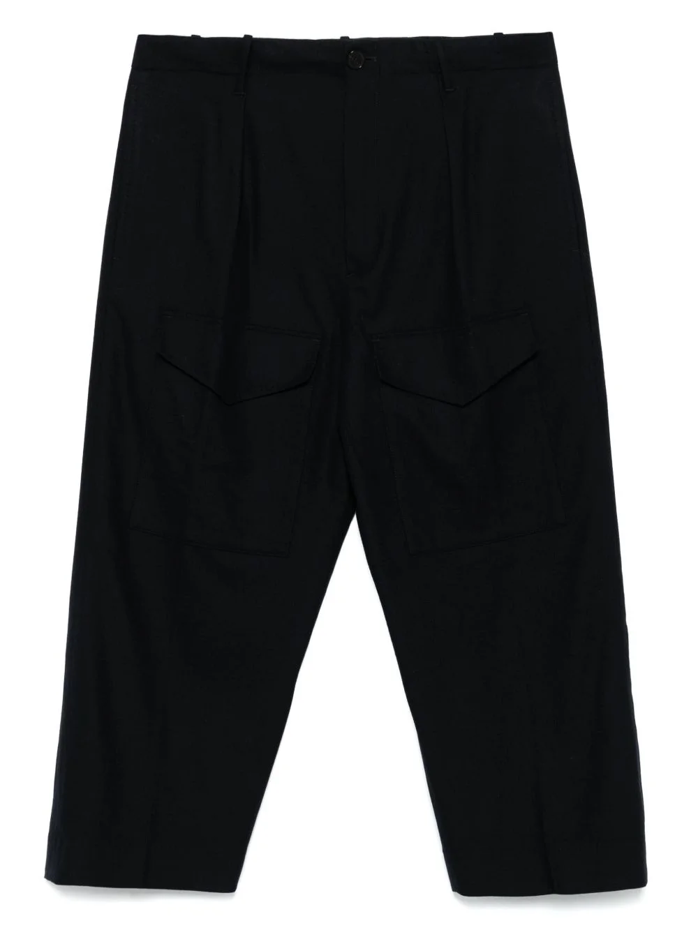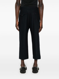 cropped trousers Highlights - Midnight blue - Concealed fly and button fastening - Belt loops - Two side inset pockets - Two front flap pockets Made in Italy Composition Virgin Wool 68%, Polyamide 25%, Cashmere 5%, Elastane 2% SIZE & FIT Model measurements Height 5 ft 9 in(1.75 m) Bust/Chest 31.88 in(81 cm) Hips 34.64 in(88 cm) Waist 24.01 in(61 cm) FittingInformation This piece is unisex and is designed with a dropped-crotch style, whether you usually select women's or men's sizes Adjust this piece’s waistband to your preference using the drawstring Made from a midweight stretch fabric, this piece offers elasticity and flexibility when worn
