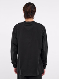 SETCHU t-shirt in black, paneled cotton construction, crewneck, long sleeves, straight hem, relaxed fit. Made in Portugal 100% Cotton Japanese Sizing Model is 6'1” and wears a size 2. Shoulders: 17” Chest: 33” Waist: 30”