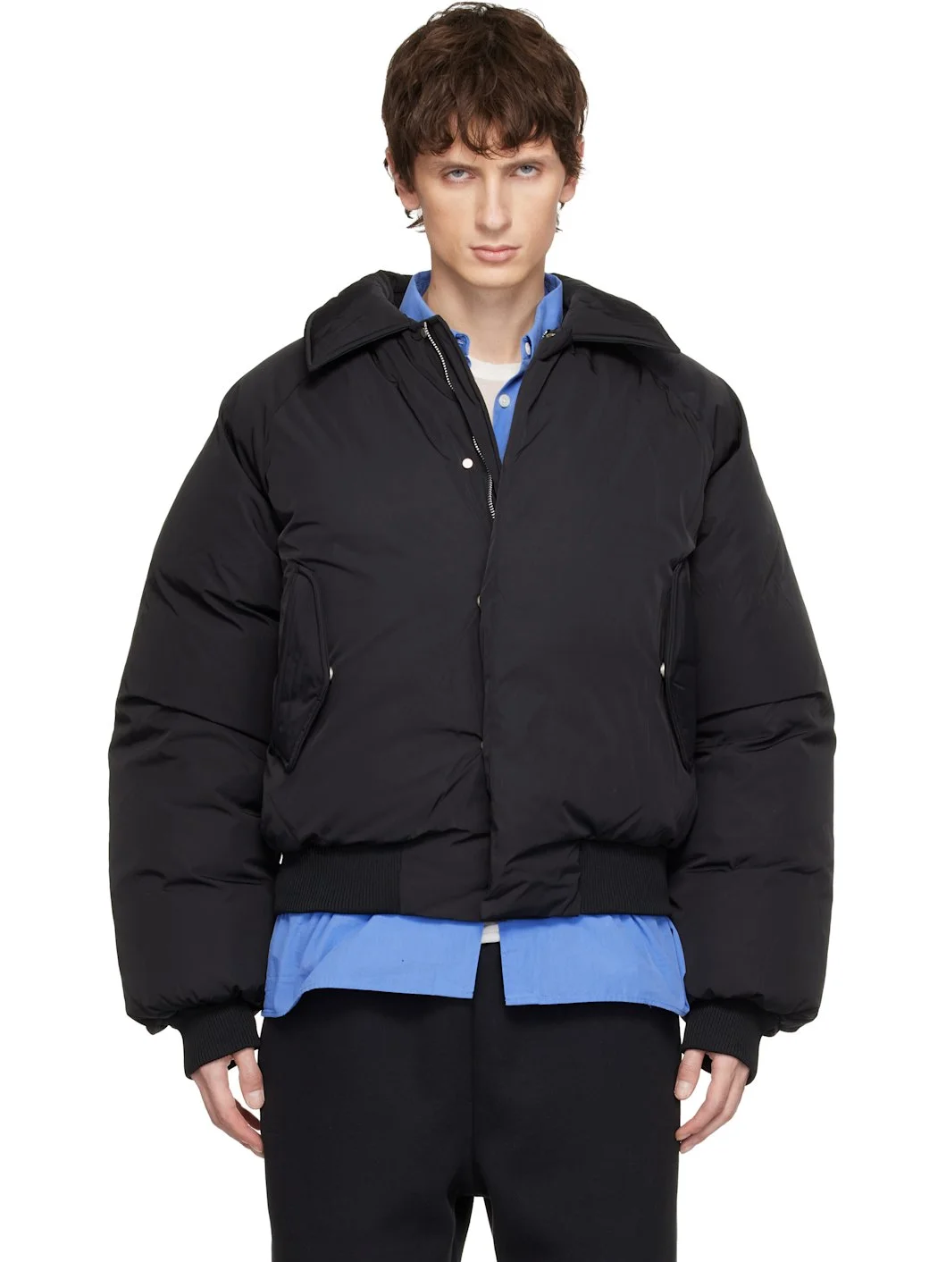 Padded nylon taffeta bomber jacket. · Spread collar · Concealed zip closure with press-stud placket · Flap pockets at front · Rib-knit hem and cuffs · Raglan sleeves · Zip pocket at interior · Full satin lining Supplier color: Night Body: 100% polyamide. Fill: 100% recycled polyester. Lining: 100% polyester. Made in South Korea 252812M175001