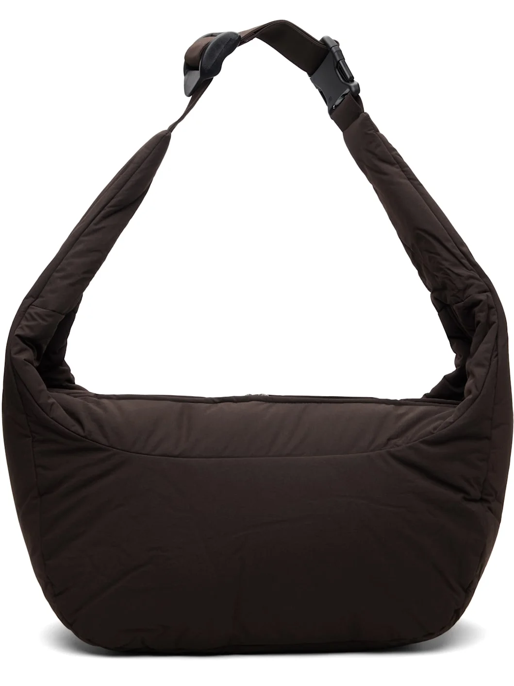 Padded nylon taffeta messenger bag. · Water-resistant · Adjustable press-release crossbody strap · Two-way zip closure · Patch and zip pocket at interior · Canvas lining · H11" x W23.5" x D8" Supplier color: Chocolate Body: 100% nylon. Fill: 100% polyester. Lining: 100% polyester. Made in South Korea 252812M170004