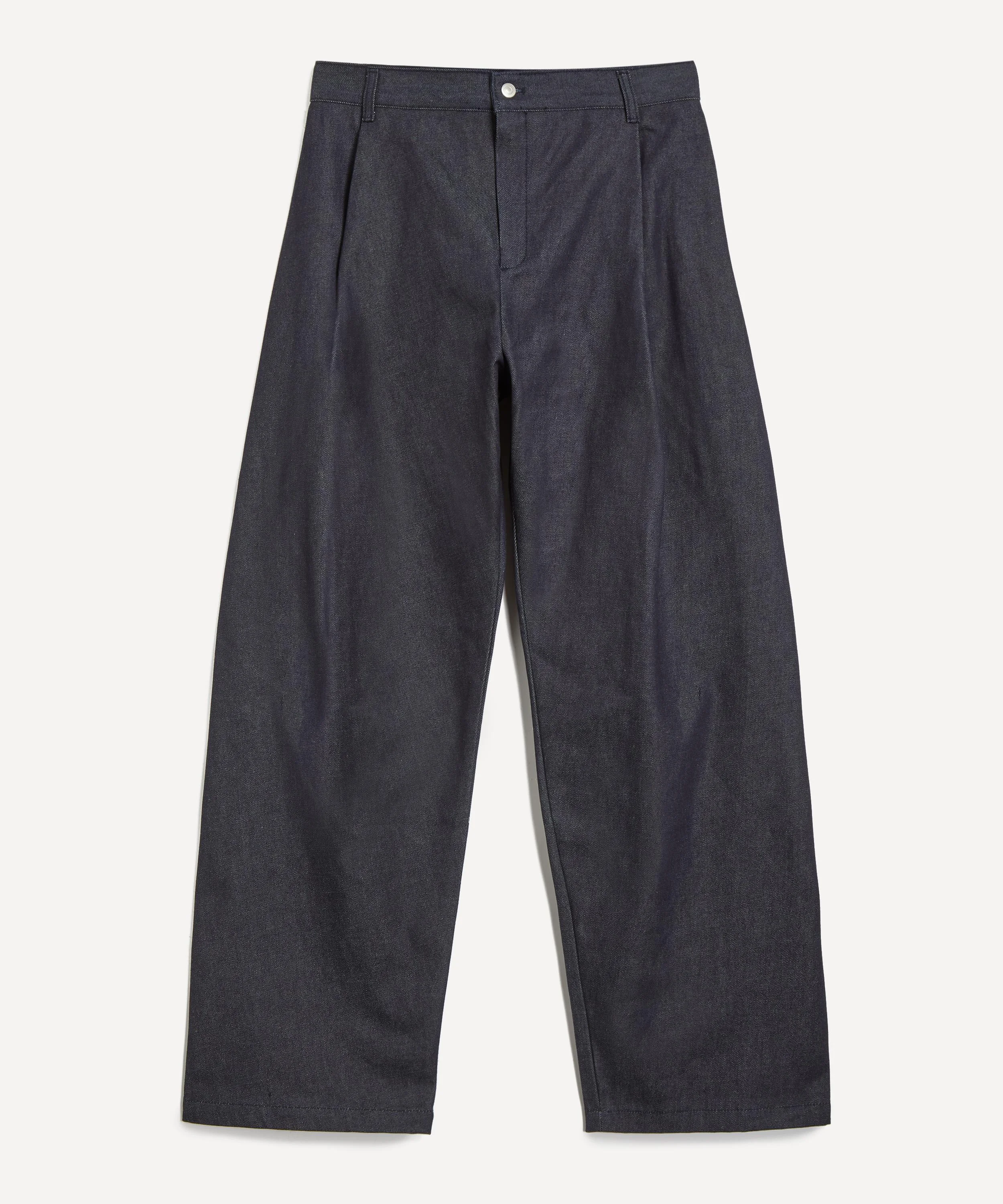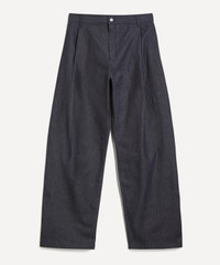 DETAILS Denim jeans Turkish cotton twill denim Loose fit Wide-leg Belt loops Button closure, zip fly Centre-front knife pleats Side pleats Two hidden front pockets Designed in London, made in Seoul, South Korea SIZE & FIT Model is 186cm/6'1"; Chest: 92cm; Waist: 71cm and wears a size M COMPOSITION & CARE 100% Cotton Cold hand wash
