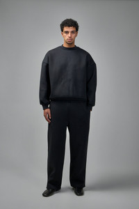 Wide-leg pants in black with a relaxed, straight fall and elasticated waistband. The piece has slanted side pockets and full-length hems that drape over shoes for a casual, streamlined look. Materials: 50% Cotton, 50% Polyester Color: night SKU: 153170 Brand style: SVJB017 Size and Fit The model is 1.89m (6.2ft) and wears a size L. The item has a looser cut but is not necessarily oversized. It’s intended for a comfortable and easy wear.