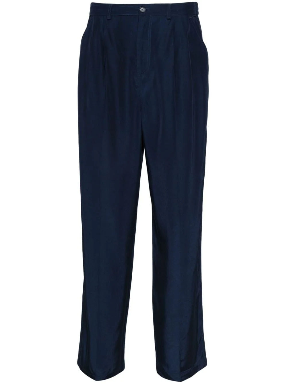 Clyde trousers Highlights - Midnight blue - Pleat detailing - Belt loops - Front button and zip fastening - Rear elasticated waistband - Straight leg - Two side inset pockets - Two rear welt pockets - Straight hem Imported Composition Lining: Polyester 80%, Cotton 20% Outer: Acetate 100% SIZE & FIT Model measurements Height 6 ft 2 in(1.87 m) Bust/Chest 36.22 in(92 cm) Hips 35.43 in(90 cm) Waist 29.13 in(74 cm) FittingInformation Designed for a straight-leg, allowing for an unrestricted and comfortable fit over the leg The partially elasticated waistband offers increased movement and comfort at the waist Made from a lightweight non-stretch fabric This piece fits true to size – take your usual size