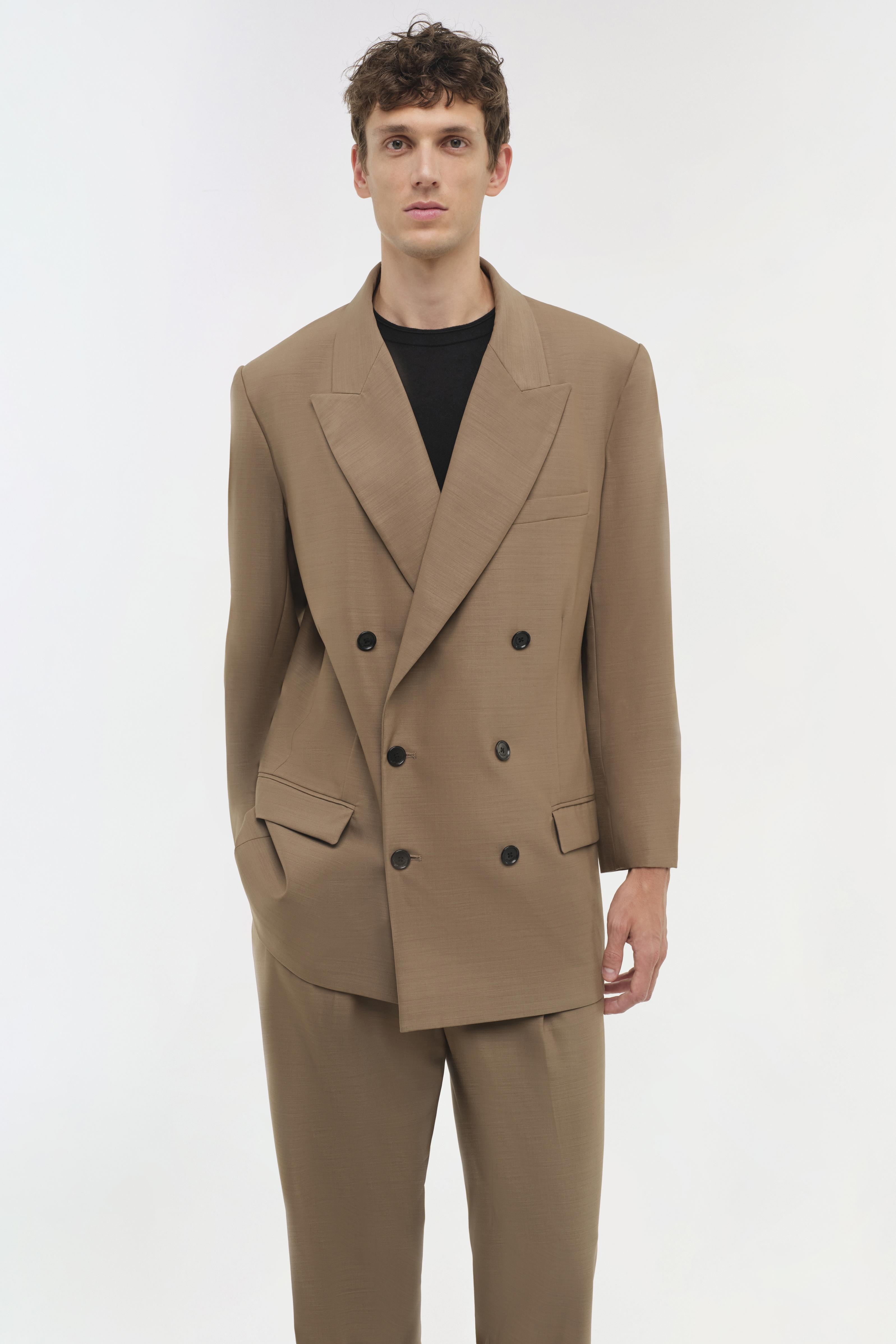 Details - Self: 50% wool, 25% recycled polyester, 22% polyester, 3% elastane - Lining: 55% polyester, 45% viscose - Made in China - Dry clean only - Double breasted closure - Front flap pockets and interior pockets - Buttoned cuffs - Padded shoulders - Our Style No. JSIM-MO7 - Manufacturer Style No. 524-6029-MEN
