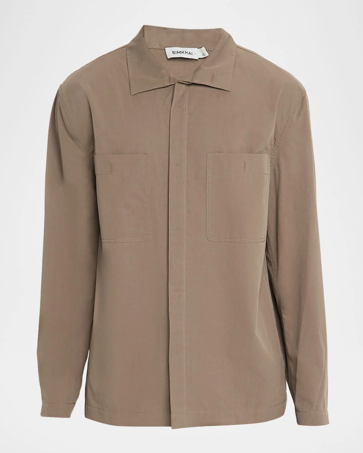 - SIMKHAI "Sean" utility jacket displays a timeless and modern style with a contemporary relaxed fit - Spread collar - Concealed button front - Chest patch pockets - Long sleeves - Single-button cuffs - Vented sides - Cotton/Tencel® lyocell - Dry clean - Imported