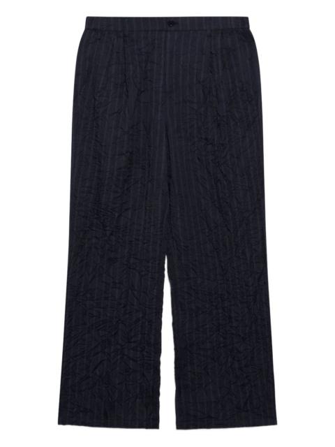 pinstripe trousers Highlights - Black - Pinstripe - Crinkled effect - Button fastening - Elasticated waistband - Straight leg Imported Composition Polyester 100% Washing instructions Read Manufacturer Guidelines