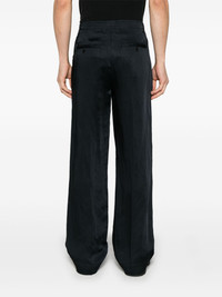 Wilson trousers Highlights - Black - Concealed front button, hook and zip fastening - Belt loops - Two side slit pockets - Two rear button-fastening pockets Imported Composition Outer: Viscose 60%, Linen/Flax 40% Lining: Polyester 55%, Viscose 45% SIZE & FIT Model measurements Height 6 ft 1 in(1.85 m) Bust/Chest 35.82 in(91 cm) Hips 37.79 in(96 cm) Waist 29.13 in(74 cm) FittingInformation Designed with a wide leg, offering a loose and roomy fit Made from a midweight non-stretch fabric