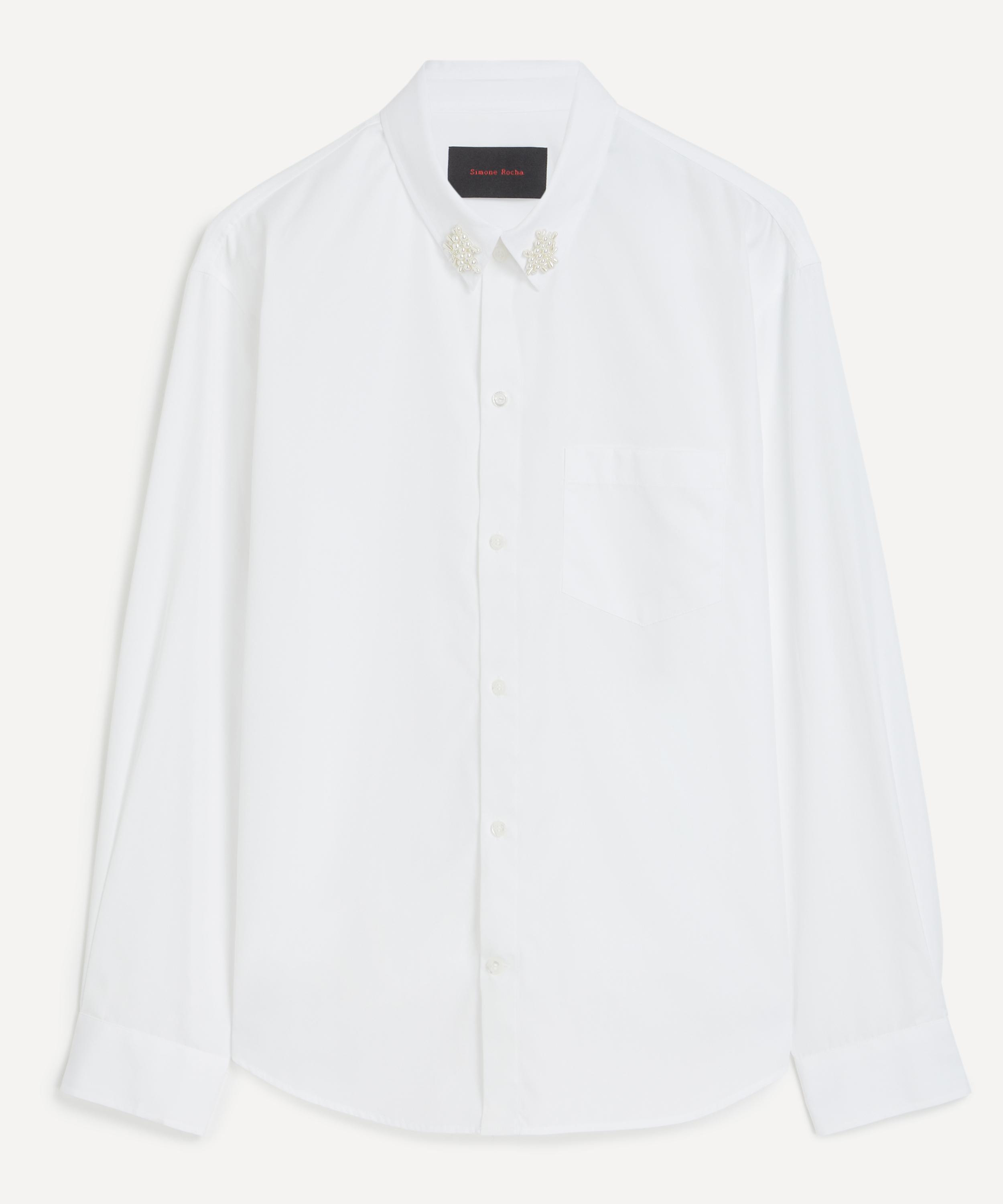 DETAILS Cotton poplin shirt Classic fit Pearl-embellished spread collar Front button fastening Patch pocket Rounded hem SIZE & FIT Model is 188cm/6'2"; Chest: 92cm; Waist: 80cm and wears a size M COMPOSITION & CARE 100% Cotton Dry clean