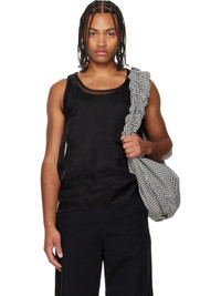 Rib-knit stretch cotton vest. · Integrated sheer organza overlay · Scoop neck · Button vent at side seam Supplier color: Black/Black Body 1: 96% cotton, 4% elastane. Body 2: 100% polyester. Made in Portugal 252405M214001